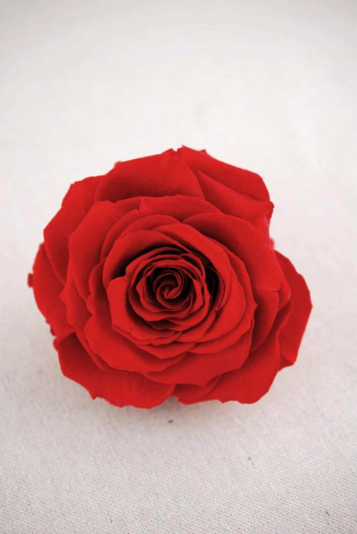 Add a pop of color to your wedding with this vibrant, red Preserved Rose. This large rose head is real, preserved with glycerin and dyed to retain its lifelike appearance. The rose head measures about 4″ across, will last much longer than freshly cut roses, and will never wilt or bruise.