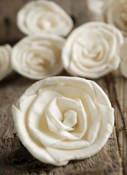 Sola Roses (15 flowers/pkg). Each flower is 2-1/2″ wide. Handmade flowers that are made from tapioca wood peel. It is a soft wood so you can easily string them together with a needle to make natural garlands for decoration. Sola wood- is an entirely natural product derived from the tapioca plant. Make into bouquets, table number holders, decorations. Make an everlasting bouquet in minutes with a floral bouquet holder and 2in corsage pins. Just put the corsage pin through the middle of flower! Wrap the handle of the bouquet holder in ribbon. Also see: