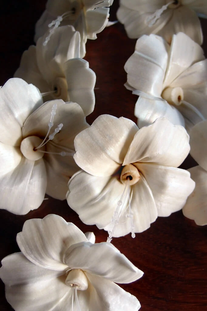 Handmade flowers that are made from tapioca wood peel. It is a soft wood so you can easily string them together with a needle to make natural garlands for decoration. Sola wood- is an entirely natural product derived from the tapioca plant. Make into bouquets, table number holders, decorations. These blooms measure 1.5″ tall and 2.5″-3″ across, and come in sets of 12.