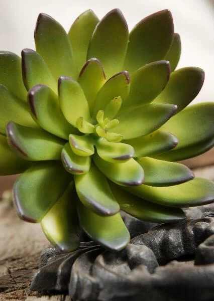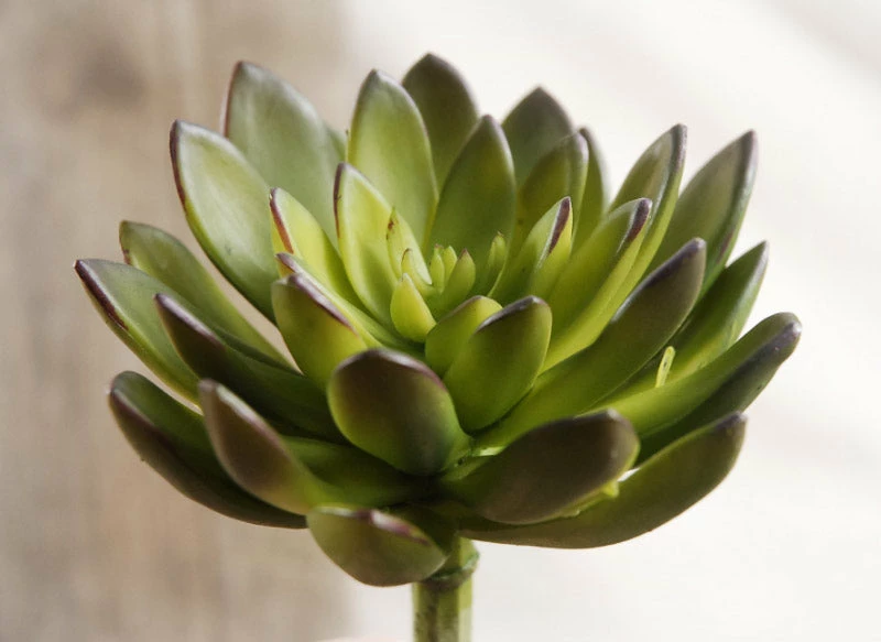This Succulent Echeveria Green & Burgundy 8.5in Natural Touch is a great addition to floral arrangements, terrariums, and western-themed decor. This artificial succulent pick is Echeveria; green in color with burgundy tipped leaves. Natural touch. Â