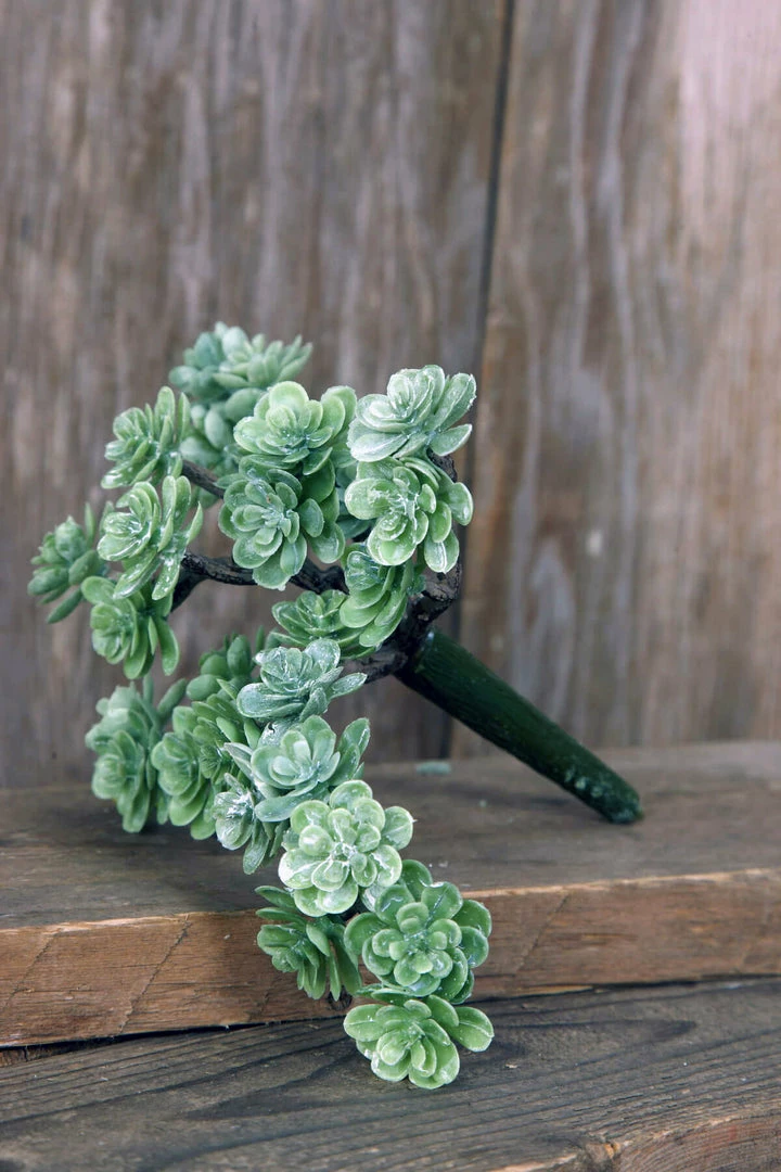 Adorn your floral arrangements with this artificial Sedum Pick Dusty Green. Use this 5″ faux succulent spray to decorate a wreath, or place several of these cascading ornaments in a galvanized bucket or basket for a simple centerpiece. Pair it with other succulents for a stunning arrangement with a realistic composition.Â