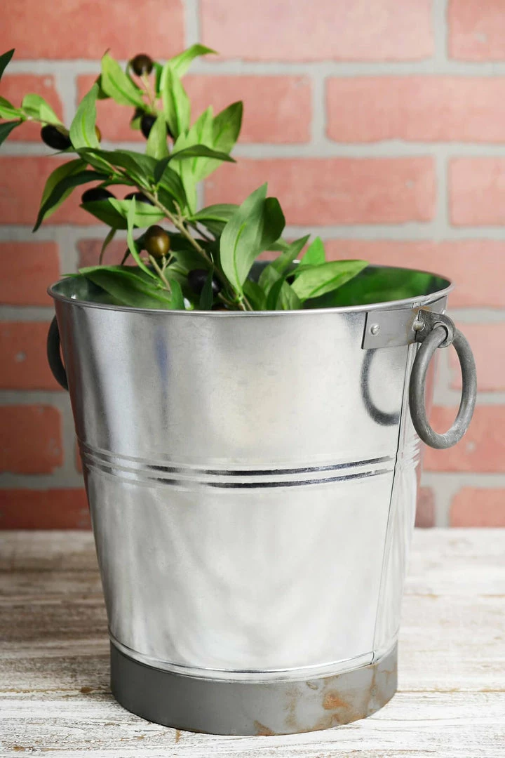 This eye-catching Galvanized Flower Bucket with Ring Handles can be used to hold flowers or as an ice bucket. This decorative bucket is made of metal and features heavy ring handles on two sides. Use this tapered shape bucket to display bright floral arrangements or greenery for your patio or garden-themed event!