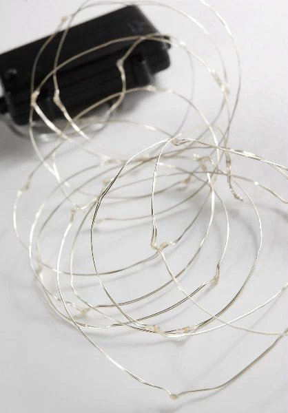 Decorate for an event with our 10 ft warm white fairy light strands with 30 tiny LEDs (size of a water droplet) on thin silver bendable wire. Includes a timer with a programmed 6 hours on, and 18 hours off. Uses 3 AA batteries. Use them for bringing a new look to your parties. Indoor/outdoor