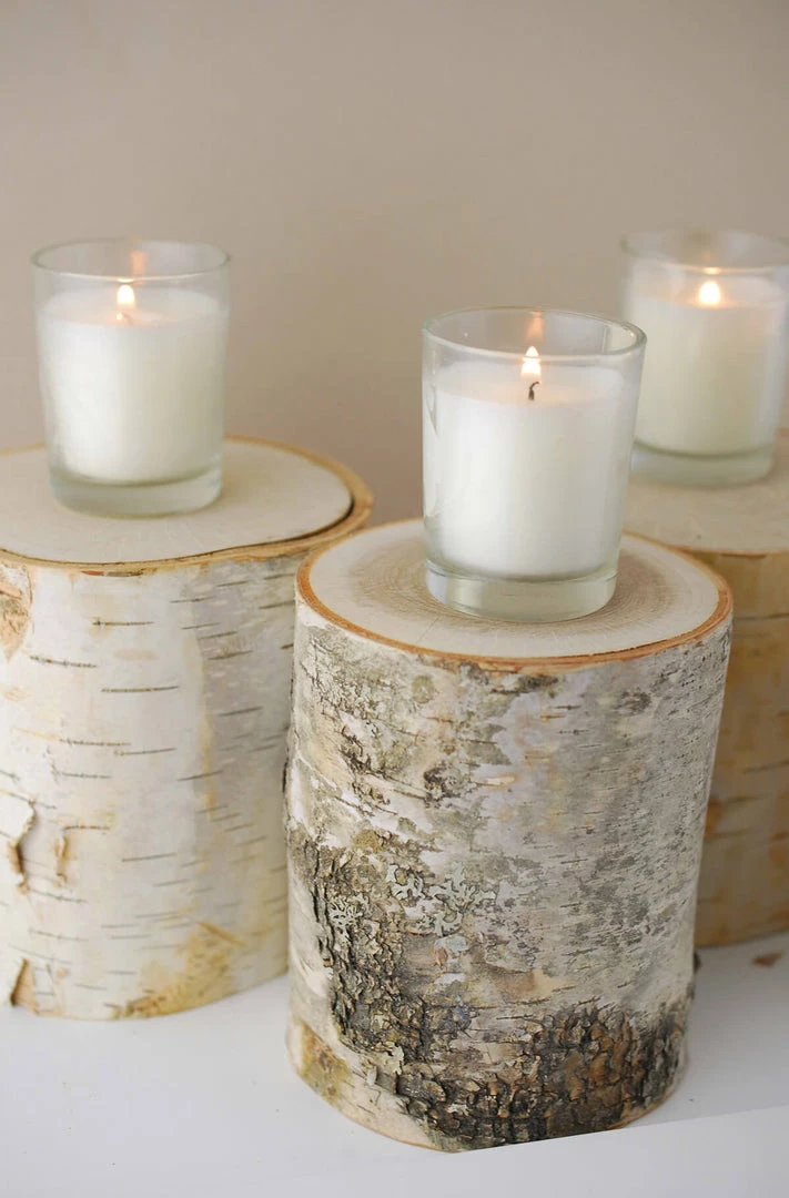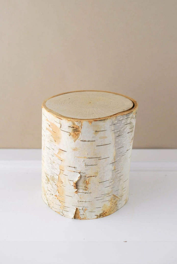 Craft a singular woodland centerpiece using this Birch Pillar! This 5″ log will bring the feeling of a crisp outdoor setting to any space and is especially useful for adding height to centerpiece arrangements. Use this natural birch branch to elevate pillar candles or votives (not included) at your garden party, or pair it with various sized pillars to fashion a unique candlelit display. This is a natural product, so measurements may vary. Each pillar is approximately 3-5″ wide and 5″ tall