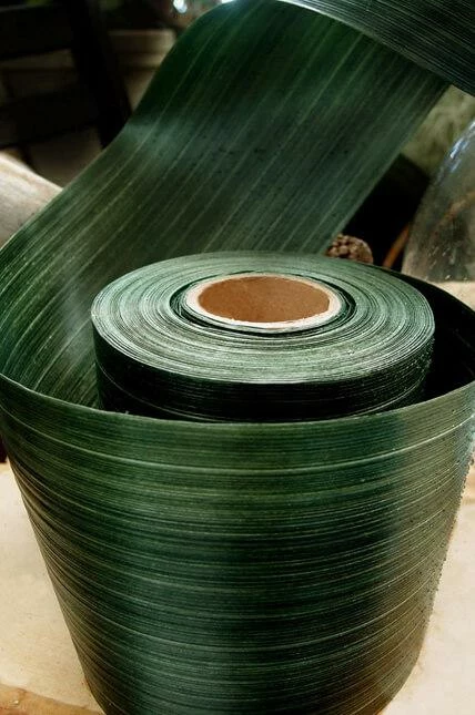 Aspidistra Ribbon Dark Green is waterproof so it is great to use inside clear vase to hide flower stems instead of using ti leaves or real aspidistra leaves. It has a natural looking textured green leaf look. A deep green variegated Aspidistra Ti Leaf 4″ wide ribbon that is on a 50 yard spool. Get a fresh natural look for your floral creations with this waterproof ribbon. Our Aspidistra ribbon resembles nature itself.