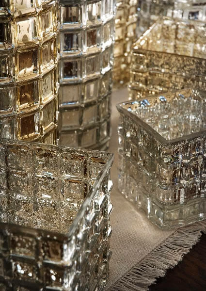 Fill this slender tube of mirrored mosaics with tall, floral bouquets. Or, place a candle inside this vase and enjoy its icy glow illuminate its surroundings. This piece is 9.75″ tall, 5″ wide, and stands about 9.25″ deep. It contains absolutely no mercury.