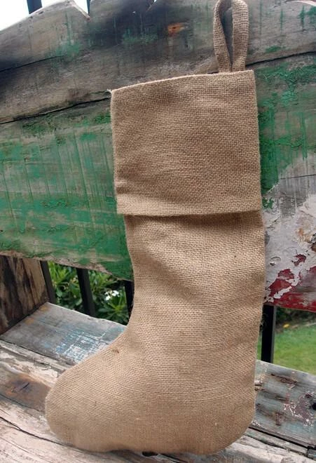 This is a set of 6- 16″ Long Burlap Stockings. Embellish these stockings with colorful ribbon and give them to friends, family members, or guests. Perfect for a rustic Christmas decor. Measures 10″ wide (at the bottom) and 16 inches tall with a 2 inch loop for hanging. Folded top cuff is 6″ wide x 5″ long. Made with 100% natural jute/burlap.
