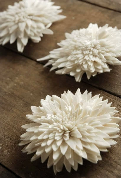 With their long, slender petals reaching out, these Sola Zinnias are a wonderful addition to a spring tea party or summer wedding. Made of sola wood, derived from the tapioca plant, these flowers are soft and pliable, and easy to string or hang. These blooms measure 1″ tall, and 3″-3.25″ across, and come in sets of 3. Make an everlasting bouquet in minutes with a floral bouquet holder and 2in corsage pins. Just put the corsage pin through the middle of flower! Wrap the handle of the bouquet holder in ribbon.