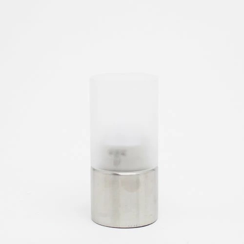 The perfect combination of frost and steel combine for a really amazing tealight candle holder! The stainless steel base elevates the frosted top to create a soft glow from the candle placed inside. This holder fits Richland tealight candles to complete the look! Choose from this size, medium, or large or use in combination to create a set perfect for your needs! A new favorite for home, restaurant, venue, church, or events!