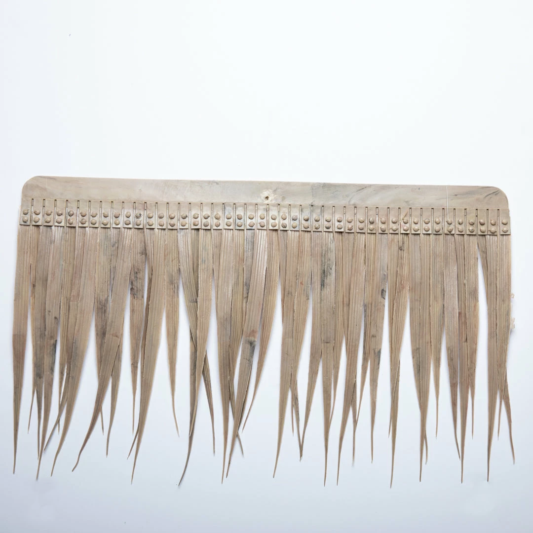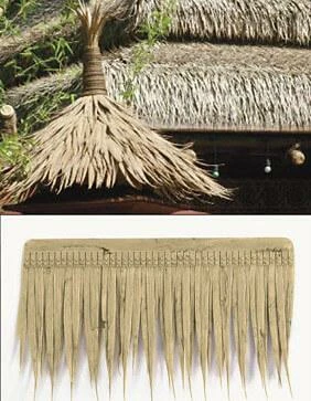 Our 19″ wide x 11″ high thatch shingle, designed for outdoor use, is 100% synthetic, flexible and easy to install. This single replica thatch shingle provides instant tropical flare for decorative roofing, tiki bars, cottages, umbrella covers, etc. It will last many years and eliminate the problems associated with natural thatch. It will not rot, mold, or look unsightly. This is the same thatch DisneyLand and DisneyWorld use.