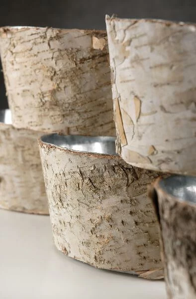 Richland Weddings Natural Birch Bark Zinc Planter Pot 4×8