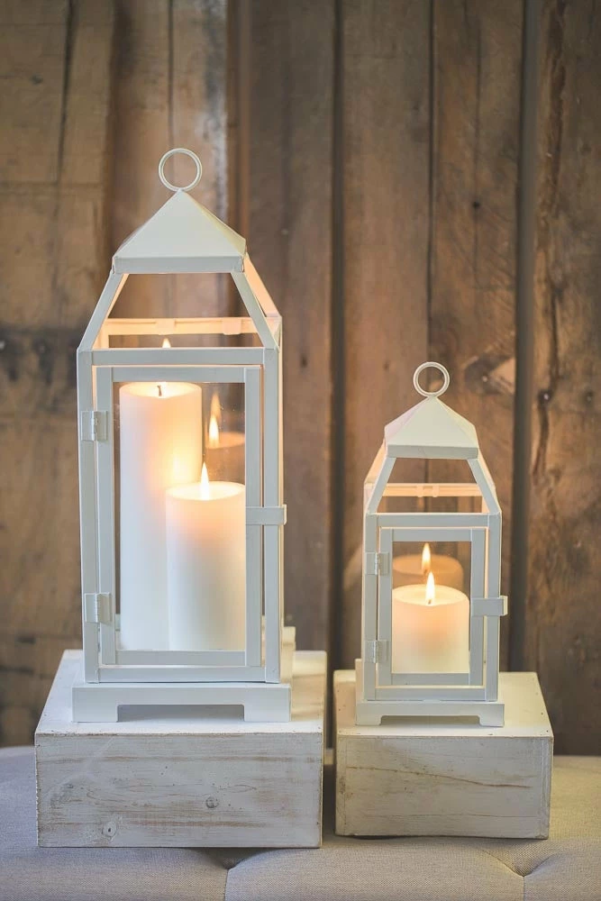 Richland White Contemporary Metal Lantern with Clear Glasses – Small