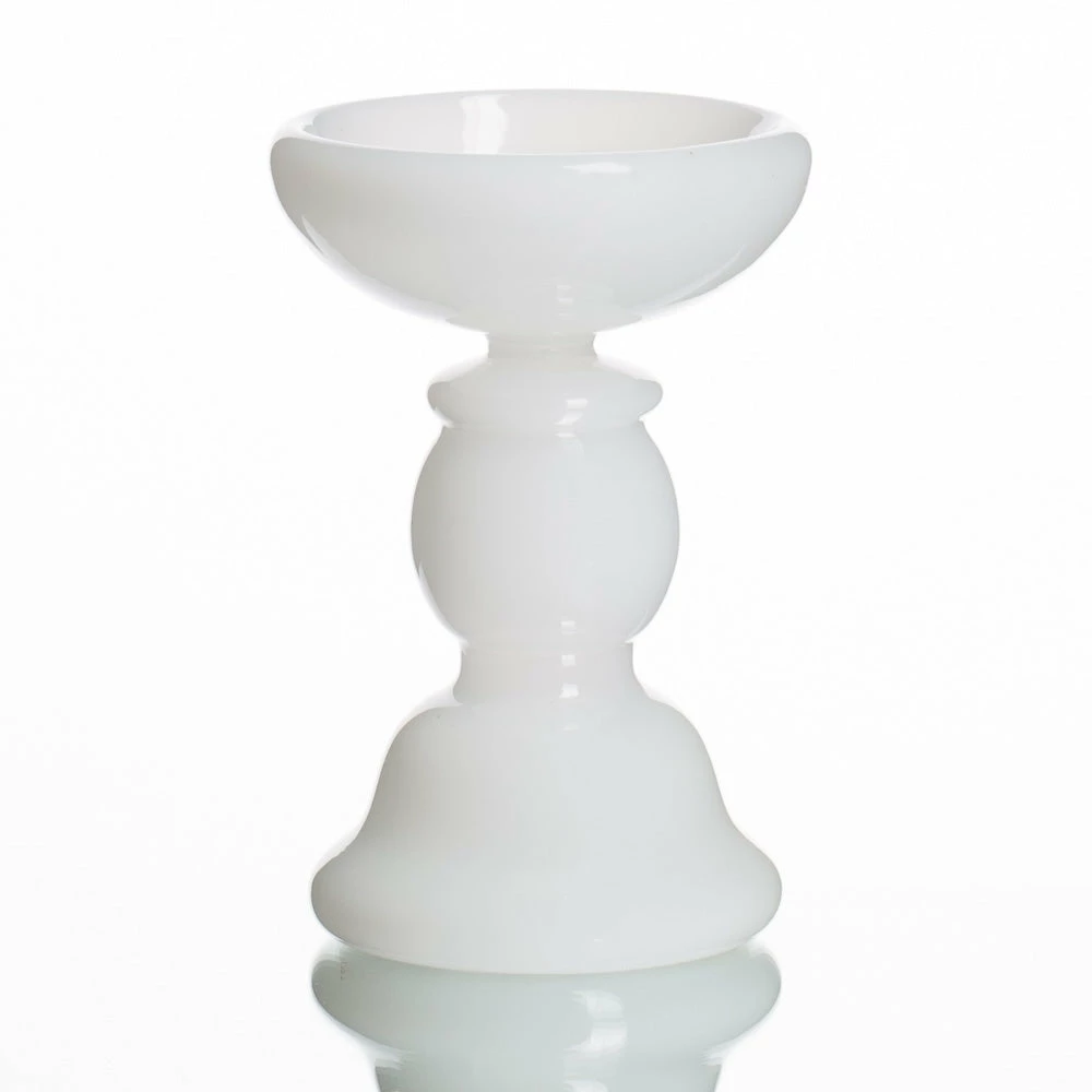 Can you say gorgeous? These white glass pillar candle holders are so stunning. Both sophisticated with a touch of modern, these pillar candle holders can be added to your home or event with ease. Adding 3” pillar candles atop the holders will provide the perfect elevated glow. Offered in the trio of small, medium, and large individually or in an easy to use set of 3! Pick your size or mix and match to create the perfect tablescape and glow in your very own space.