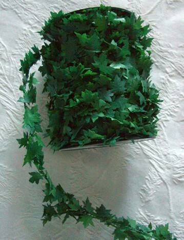 Add a touch of leafy green to your home, party, or costume with this pvc ivy strand. Completely wired, make into napkin rings and can be twisted around the base of candles, cake stands, or centerpiece vases. This garland measures 27 yards long, and can be cut to size. The PVC leaves measure .5in tall.