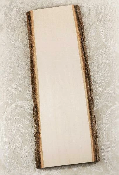 This 23″ long Basswood plank has bark on two sides. It is an excellent, smooth sanded surface, to use for signs. It is 9-11in wide x 23in long and is 5/8in thick. Has been kiln dried and finely sanded. This rustic piece of wood is the perfect, simple addition to your country-themed home decor or wedding reception. The Wood Plank with Bark can be used as a simple platform for your centerpieces on a long banquet table.
