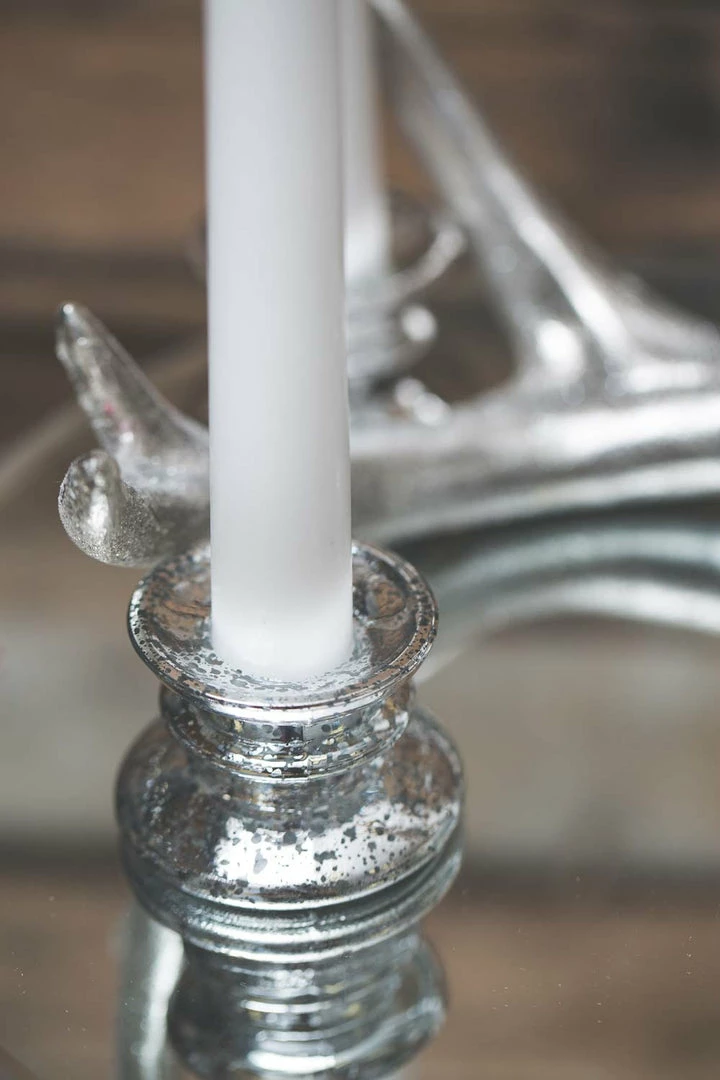 Amazing Athena. This understated mercury taper holder makes any setting twice as fabulous! This taper candle holder may be small, but packs a mighty, mercury punch! Available in gold and silver mercury, this holder goes perfectly with everything!