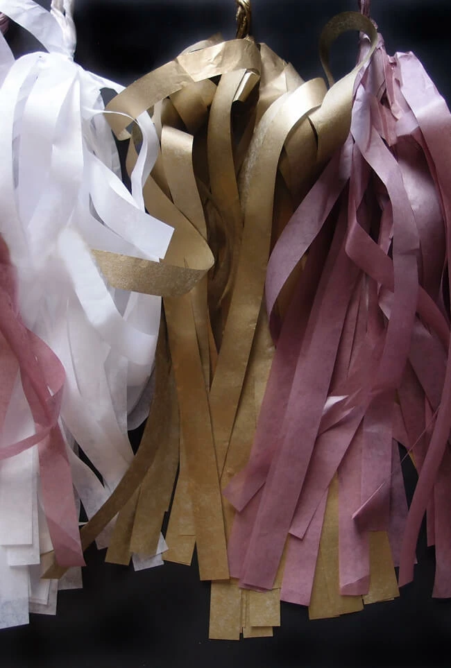 Tissue Paper Tassel Garland Kit – Gold Party (Gold, White, Light Rose) 20 Tassels