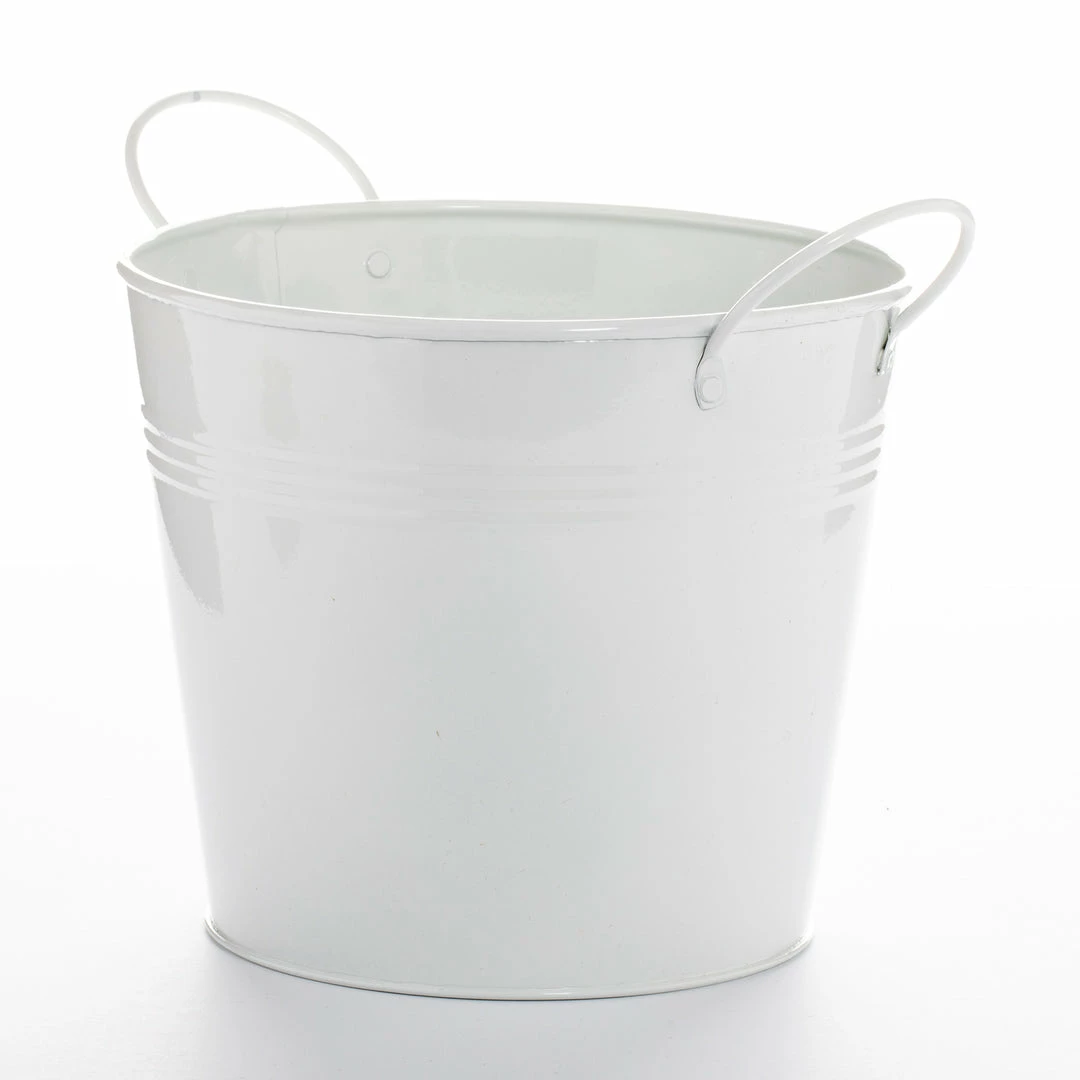 Bring classic charm to your home or party with this White Metal Bucket 6.5″! This small pail is made of metal and painted white; and features two handles for easy handling. This simple, sweet piece is a perfect vessel for floral arrangements or greenery. Use to accent your garden-themed party, fill will party favors at the entry table, or tie ribbon on the handles to enhance the pail as a centerpiece vessel. You could also personalize the bucket by writing on it with permanent marker or paint pens; or add stickers as a creative way to present gifts! Includes a removable plastic liner.
