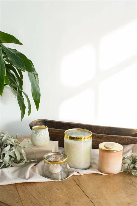 The thick rolled bubble glass Chance Votive with its elegant gold rim brings understated sparkle to every event or tabletop. Pair with the larger version for a stunning duo!