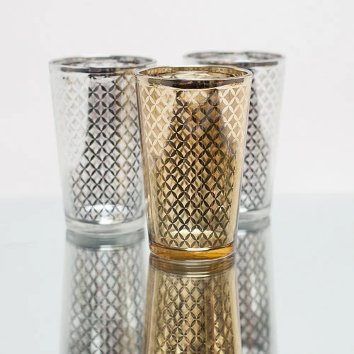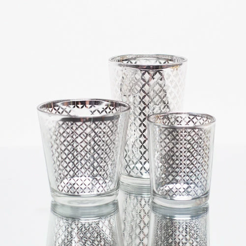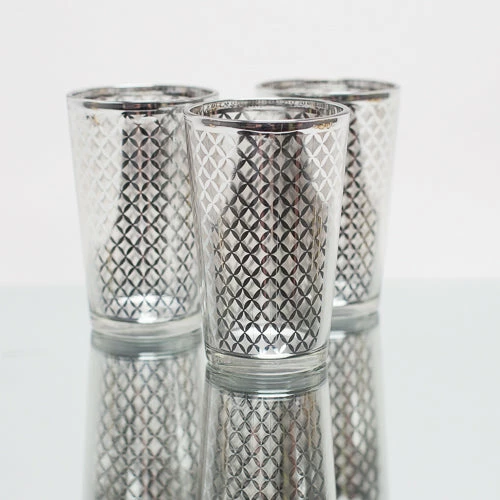 Richland Silver Lattice Glass Holder – Large Set of 6