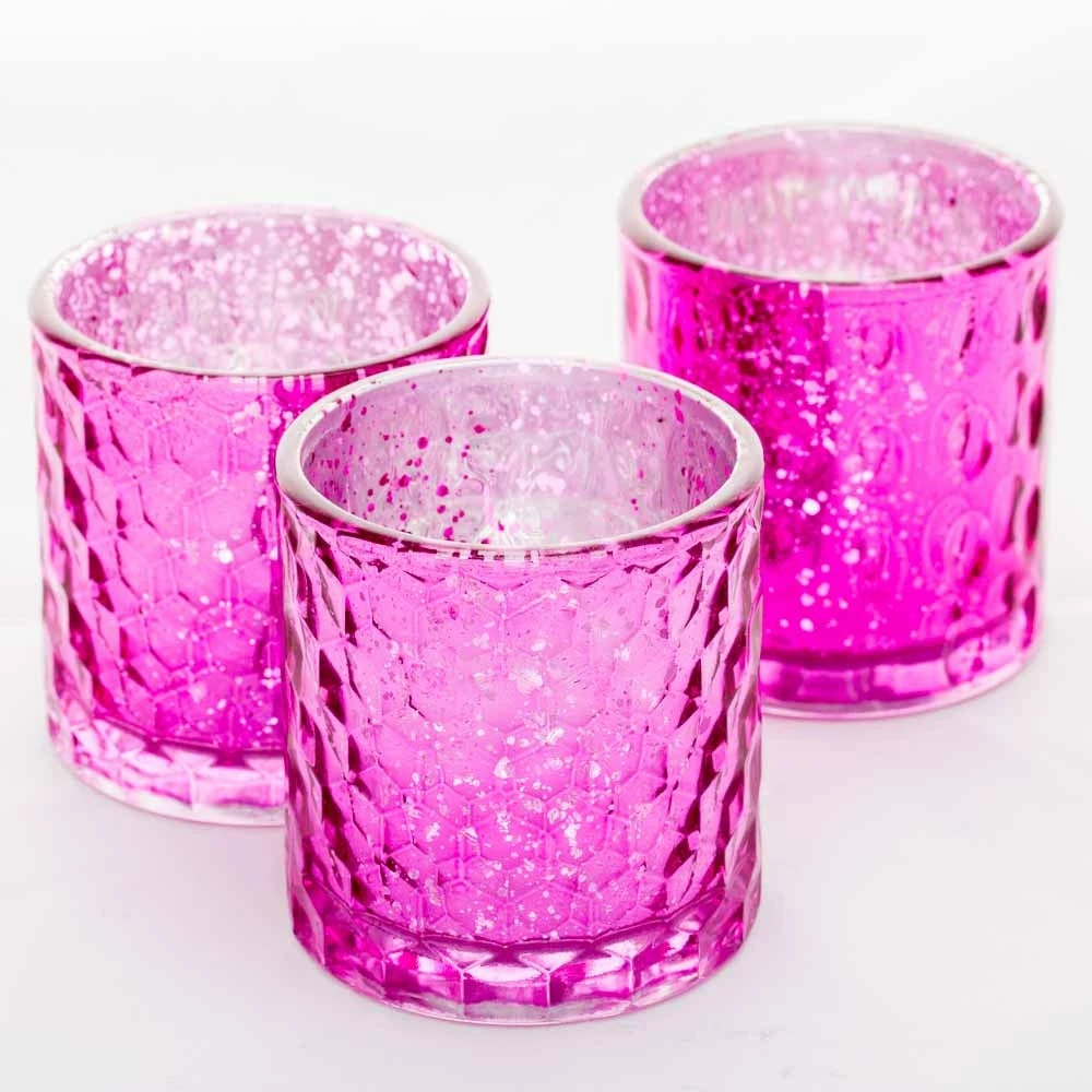Honeycomb Holders makes for sweet décor! The honeycomb design on our colored votives were such a hit we decided to add some flair to the style with mercury style glass! These bold-hue holders are sure to liven up any design. The sparkle and shimmer that bounce about outside the speckled finish of the holders when a candle is placed inside is magical. So many candle options to fill this holder, like votive candles, tealight candles, or led tealight candles to complete your look. Check out our complete line of mercury glass items in different shapes, styles, and sizes to find the perfect looks for creating your very own perfect space!