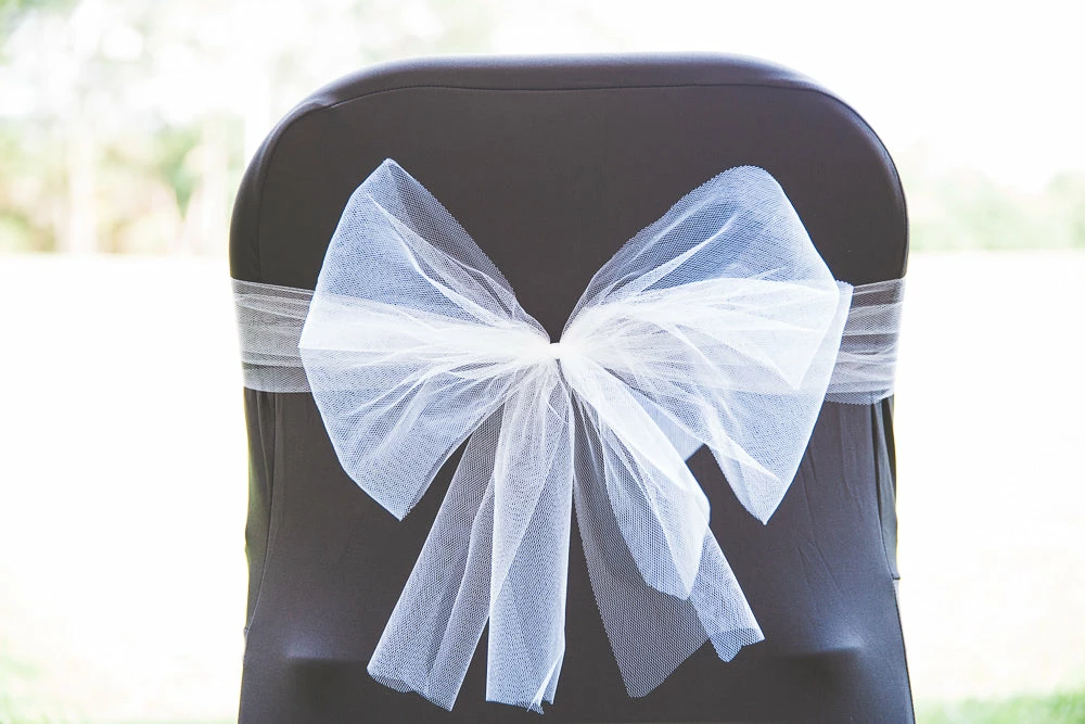 The décor and craft accessory you can’t live without is here! Our white tulle is not only a wedding staple for all kinds of DIY projects, we believe everyone should have at least one roll for lots of craft projects! Easy to use and cut! Possibilities are truly infinite with tulle! Using tulle as wedding aisle adornments, tying around chairs for weddings, draping around vases and beautiful glass for a finished look, wrapping around stairs and columns, creating a breezy ceremony backdrop …see, there are really so many ways to incorporate tulle! Pair the simple white tulle alone or add a little sparkle with our gold & silver sparkling tulle rolls!